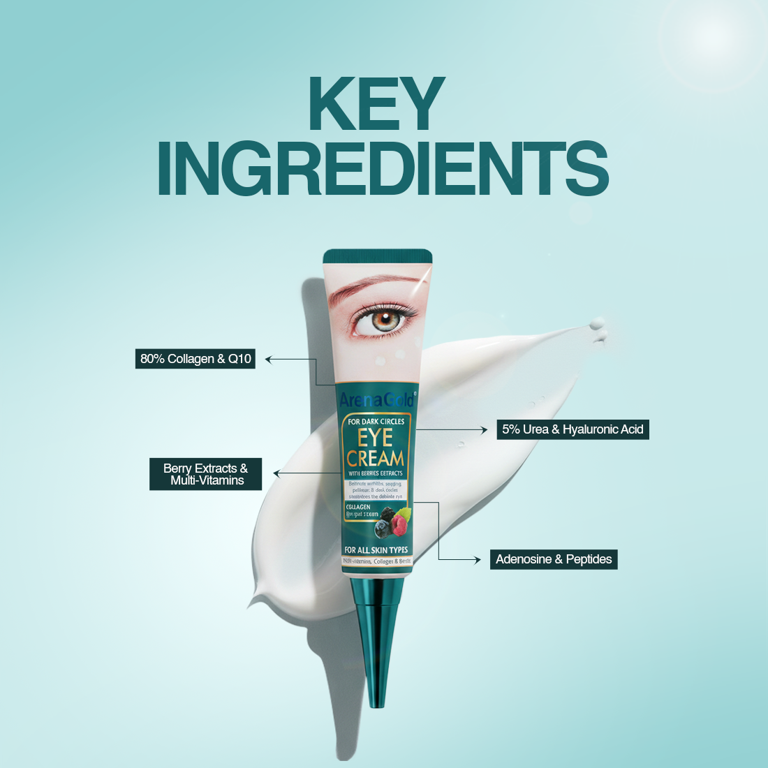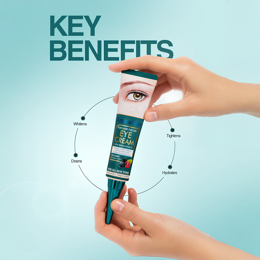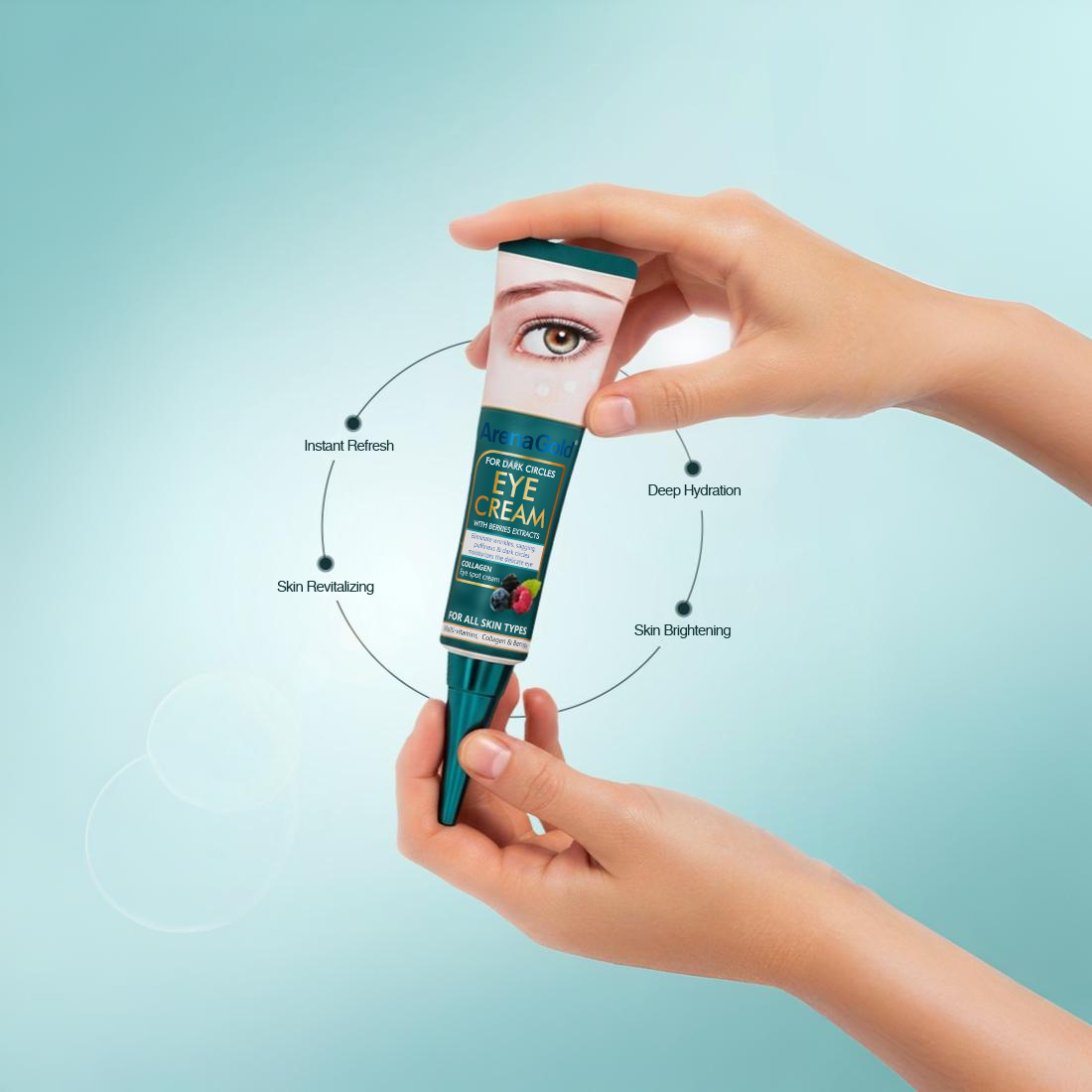 ArenaGold Eye Cream helps improve the appearance of dark circles and puffiness while hydrating the delicate under-eye area. Enriched with collagen and berry extracts, it leaves skin feeling smoother, refreshed, and revitalized. Suitable for all skin types.